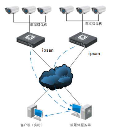 當多個客戶端需要同時查看某監(jiān)控點的相同畫面時,勢必會造成在一條通訊網(wǎng)絡線路上的數(shù)據(jù)擁堵,嚴重浪費網(wǎng)絡資源。監(jiān)控平臺軟件可以在有限的帶寬下,通過高效的流媒體轉(zhuǎn)發(fā)和流媒體級聯(lián)功能,保證音視頻流穩(wěn)定有效的傳輸,以及在不 同網(wǎng)段之間轉(zhuǎn)發(fā)媒體數(shù)據(jù),實現(xiàn)被轉(zhuǎn)發(fā)媒體位置的透明性。當有多個客戶端需要同時訪問同一遠程畫面時,在轉(zhuǎn)發(fā)服務與前端視頻通道之間只占用一個通道帶寬的網(wǎng)絡資源,再由轉(zhuǎn)發(fā)服務器將數(shù)據(jù)分發(fā)給多個客戶端,解決了帶寬、內(nèi)外網(wǎng)和多用戶訪問的沖突,有效地利用 網(wǎng)絡帶寬。流媒體服務器支持視音頻流的轉(zhuǎn)發(fā),當有多個局域網(wǎng)客戶端需要同時訪問同一遠程畫面時,可以通過流媒體服務器進行轉(zhuǎn)發(fā),在轉(zhuǎn)發(fā)服務與前端視頻通道之間只占用一個通道帶寬的網(wǎng)絡資源,再由轉(zhuǎn)發(fā)服務器將數(shù)據(jù)分發(fā)給多個客戶端。